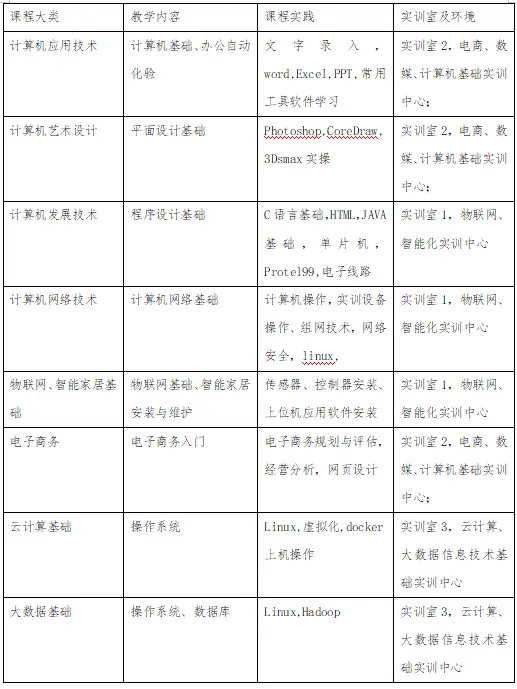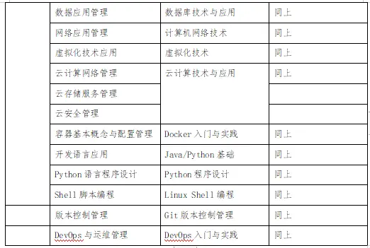 网页设计课程;Java程序设计课程;MySQL数据库课程;Linux网络操作系统课程;Python程序设计课程;JavaWeb应用程序设计课程;云计算综合运维管理课程;云存储技术课程。