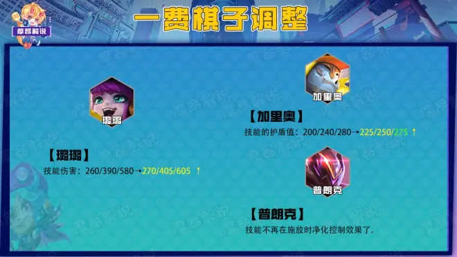 1星与2星技能伤害增强,3星技能伤害小削5点。上版本加里奥确实强度有些略高,特别是在好事成双下+正义冲拳下更是超模。
