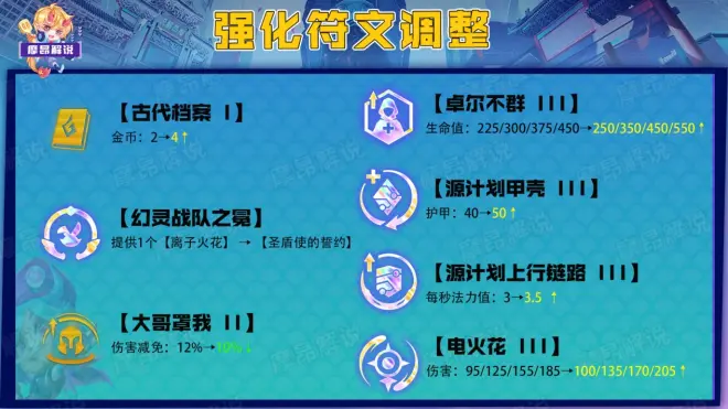 技能伤害与爆炸伤害全等级增强,特别是2星爆炸伤害提升了20点,特别是上版本6灵能增强,如果新版本塔莉娅搭配6灵能得强度会大幅度提升,但星守/灵能塔莉娅能否崛起还是需要看劫玩家得多少(这版本劫增幅有点高)。