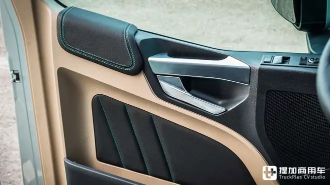 车门饰板经过了重新设计,采用了高质量的皮革面料,并设计了新的臂托,辅以绿松石色手工缝线,细节满满。