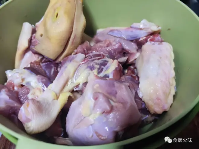 2.鸭肉放在流动水中清洗多遍,洗干净后放在碗中备用。