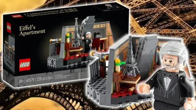 艾菲尔的公寓在现实中曾经就位于埃菲尔铁塔的塔顶,在这款乐高模型40579 埃菲尔的公寓中和现实中的公寓一样中都被塔的支柱穿过。公寓还包括一个放了鲜花的抽屉柜、一张桌子和一个埃菲尔铁塔的模型。模型是用左轮手枪零件做的支腿。