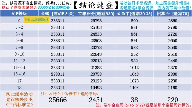 咸鱼之王 金鱼×宝箱周 屯货推荐量(金鱼周不跨月情况)