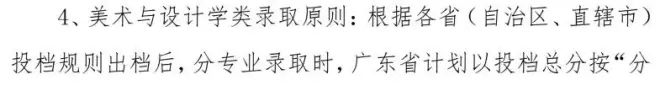 4、美术学、艺术设计学专业考生须参加各省份美术学、艺术设计学专业对应省级统考,统考合格考生在高考文化课成绩(不含政策性加分)不低于考生所在省份同科类(文/理科)本科第一批次录取控制分数线(对于合并本科批次及实施高考改革省份本科第一批次录取控制分数线参照省级招生考试机构划定的特殊类型招生控制分数线或省级招生考试机构相关规定执行)90%的条件下,按照进档考生的美术学、艺术设计学专业对应省级统考成绩择优录取。
