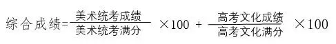 综合成绩=当年普通高考文化课投档成绩×50%+艺术类统考成绩×50%