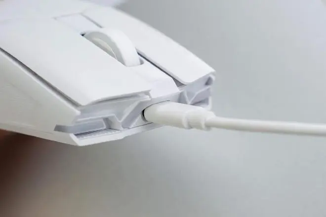 机械师M7Pro有两种颜色,分别是黑色和白色,我买的是白色的这款,而它在外观方面最大的设计亮点就是提供二驱的RGB(黑色版提供三驱RGB),能够提供五种灯效的选择。灯光在鼠标的左侧,下方是做了电量指示灯,前侧和左右键的下方也做了灯光的模具。神奇的是,当手去触摸鼠标的时候,灯效会自动熄灭;当手拿开后灯光会自动的显示。