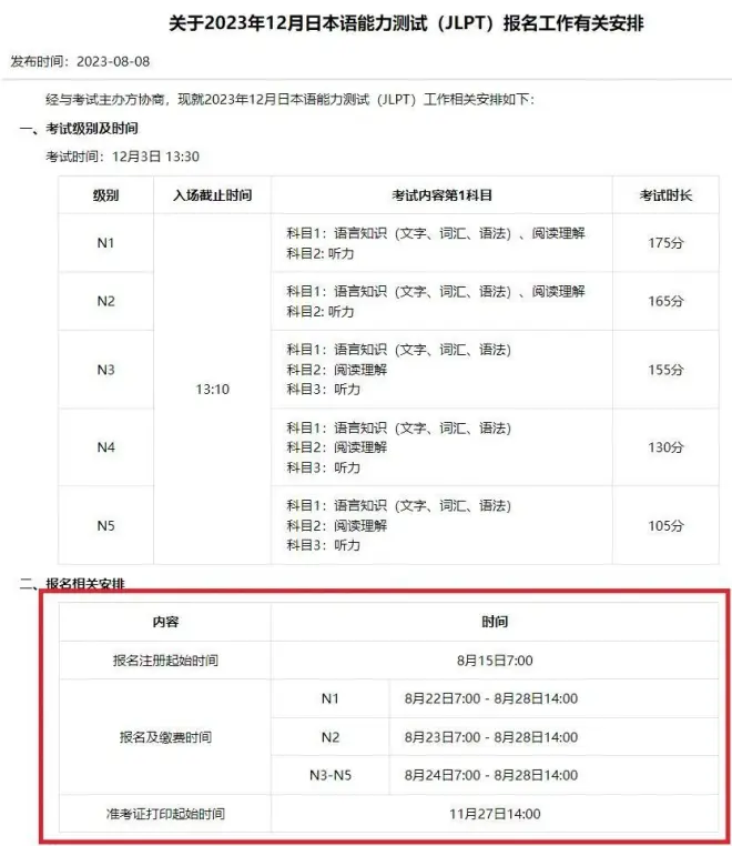 通知!2023年12月日语能力考报名时间公布!当日报名时间有变,点击查看!