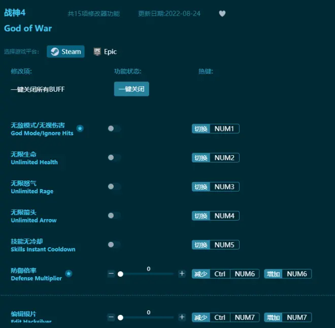 【GameBuff】战神4修改器下载(怎么用)支持无敌模式,无限生命,无限怒气,无限箭头