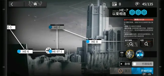 一般来说如果之前主线期间一般玩家有一直刷1-7的话土应该是不缺的,而且活动期间土的效率和1-7差不多,所以主要刷取HE-7和HE-8的材料,不过HE-8刷取时间相比于HE-7长很多,所以更建议刷HE-7。不过理想城期间复刻也会有凝胶(IC-8)和刺球(IC-9)的UP,所以刷土也是OK的