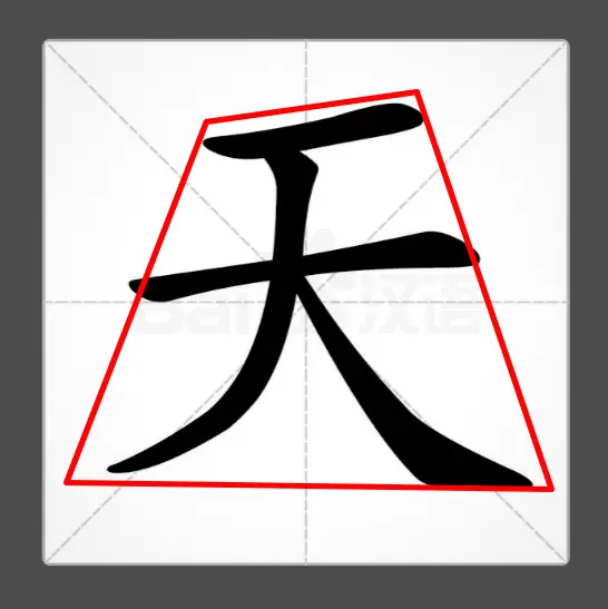 汉字又叫方块字,每个字都可以用一个方格容纳,作为小学生,字基本都是写在田字格或方格里的(即使是书法家,也常把字写在方格里)。那衡量一个字的好坏,首先就是这个字在格里位置是否居中,大小是否适当。套用一句口诀就是,上留天,下留地,左右留墙壁。