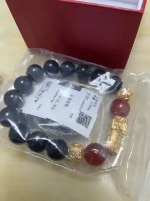 貔貅黄金手链收到了,第一眼看上去光泽度很好,戴着效果也不错,非常好,然后老庙黄金确实比普通品牌的黄金做工要好很多,总之这次购物体验非常棒。