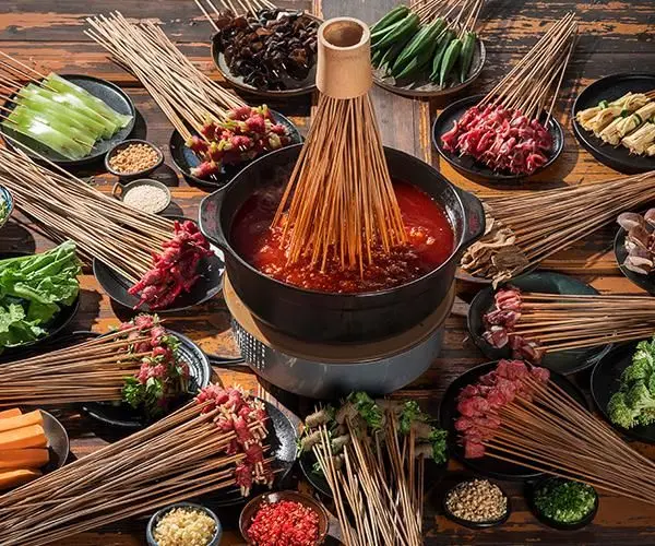 成都串串的特点是口味鲜辣,调料丰富,独具四川风味。成都串串不仅可以品尝到不同的食材和口味,而且可以根据个人的口味和喜好自由搭配各种调料。它的香气四溢、口感独特,能够带给人们一种愉悦的食用体验。