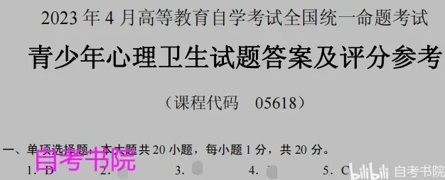 2023年4月自考《05618青少年心理卫生》真题和评分参考的评论 (共