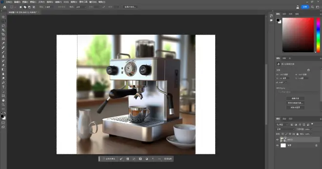 把图片扩展到你想要的背景大小,建立选区,然后点击“创成式填充”。