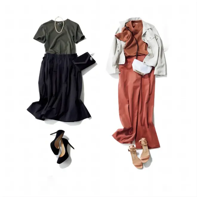 2、如果想通过这种搭配来区分自己的气质和形象,建议大家可以尝试基本款的T恤搭配基本款的裙子,比如墨绿色的T恤搭配黑色的裙子,然后选择一个包。包包可以使着装风格显得精致优雅。