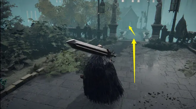 跳过栅栏过去往前走就可开启刚才结缘教堂传送门对面的捷径门