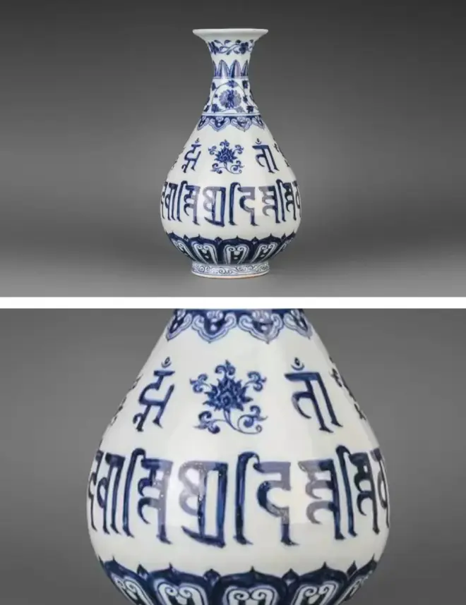 宁封怀古重工仿明宣德青花梵文玉壶春