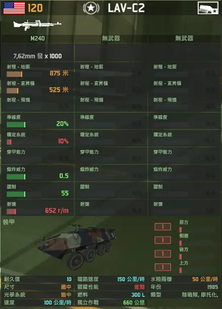 侦察LAV:不错的轮式侦察,但是只有1甲,实战很少使用