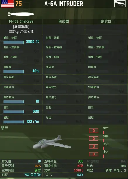 A6A入侵者:不错的炸鸡。12颗高精度10HE航空炸弹能秒杀FOB和所有在攻击范围内的单位。但是由于精度太高,炸非固定目标并不是很好用