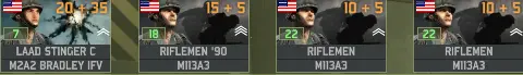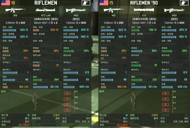 来福男/来福男90:软妹是美国出场率最高的步兵单位,也是“灵魂单位”之一。前者白板软妹属于纯炮灰,后者软妹90则能兼顾反甲,而且性价比极高。