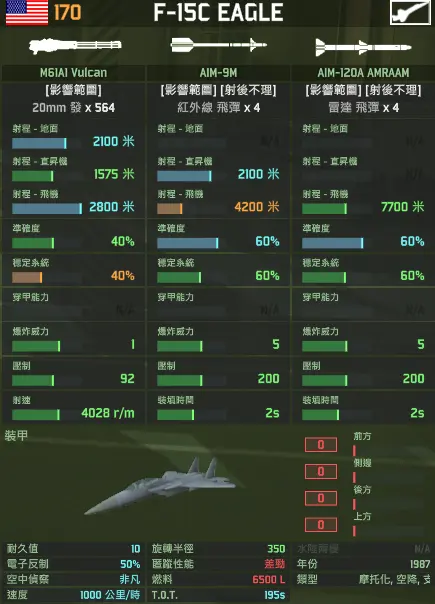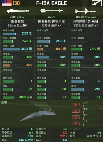 F15A:很一般的空优,很少带。不过可以和F15C形成高低搭配
