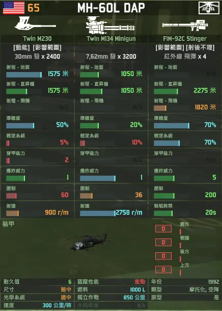 长弓阿帕奇:美国灵魂单位之一,典型的查打一体非凡眼武直。长弓的非凡眼可以在2750的距离点亮林线中的AA(差劲匿踪),携带的双联发26穿2800射后不理对所有坦克都有极大的威胁。但是导弹补给很慢,应该注意开关导弹避免打到对方的炮灰车上