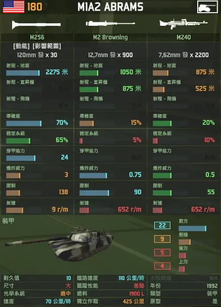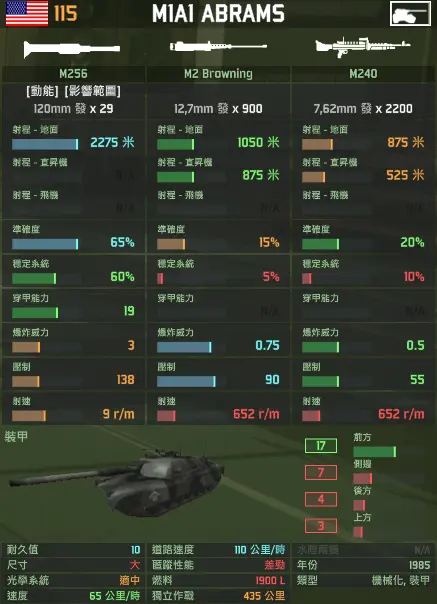 M1A1:115分的拉跨炮甲值手装机。但这也是美国唯一19穿,近距离作战还是有它的用武之地