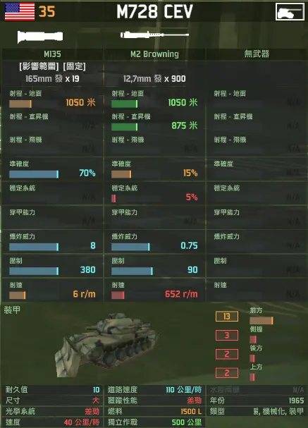 工程坦克:重甲8he,美国林战输出主力,打步兵相当好用