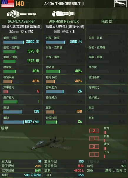 A10A:是狗斗之王、最强机炮和被动型saed机。是分数密度越低越好用的atgm机