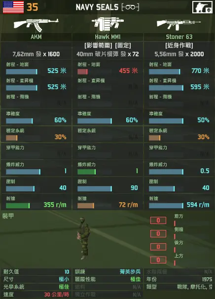 步兵CV:拥有不错的隐蔽性,推荐乘坐黑鹰以提高机动能力,或者压价坐卡车