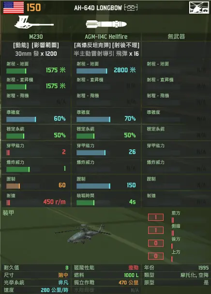 阿帕奇:机炮火箭天堂水的装备组合其实不错,机体也很棒。但是有长弓一般就不用它了