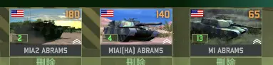 M1A1(HC&HA):HC是155分42炮甲值,能3辆。如果是在44平原方向,可以带一个。但是它的性价比不如HA。HA能出4辆且便宜15分,只差2穿,性价比是很高的