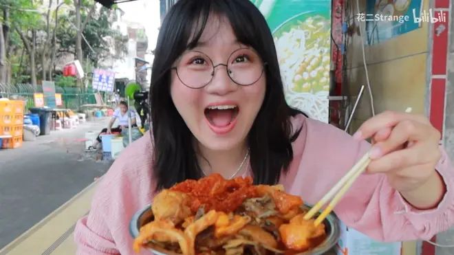 » 早上8点吃30元梦中情粉!巨无霸炸蛋!红油大猪皮抱盆吃!螺蛳粉全家福辣到汗如雨下