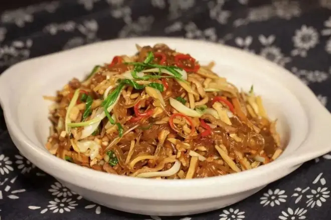 当地特产的山芋品质优良,淀粉含量高,制成的粉丝晶莹剔透、弹性十足。一丝一缕,绵香四溢,口味悠长~
