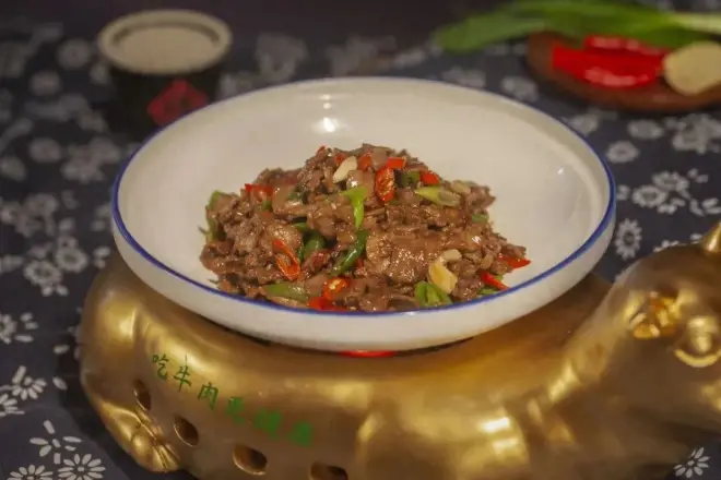 田边青草为每一块牛肉注入大自然的味道。在炒制的过程中,提前腌制好的黄牛肉香被青红椒和大蒜段激发升华,散发出更加浓郁的香味。牛肉口感嫩滑、营养丰富,让人吃完口有余香。
