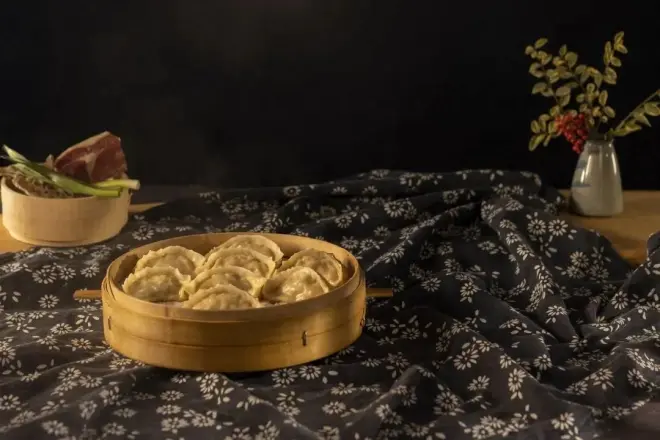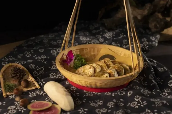 以鲜肉糜伴水豆腐做成的蒸制面食,流行于绩溪境内已有上千年历史。半月水馅包捏上12个摺,以表达月月思亲之情。水馅包皮薄软滑润,其中蕴含的情意万分浓。