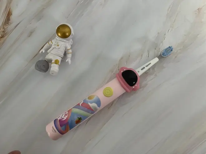 这款产品有两个档位,它的震频是38000次/分钟,对于口腔耐受低的小孩子来说会觉得有点强,但清洁力还是不错的,所以更建议给12岁以上孩子使用。