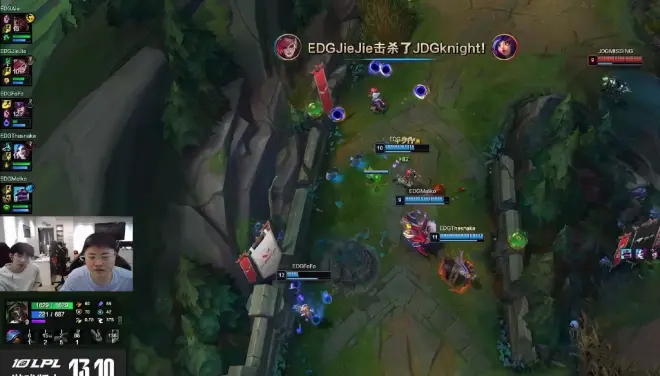 结果EDG战队果然被JDG轻松零封,基本没有还手能力,不过突破点不在下路。其实下路新人对线算是有点优势,只是一到团战就感觉很乏力,完全打不出伤害,全队没人能站出来C,输得还是蛮绝望的。
