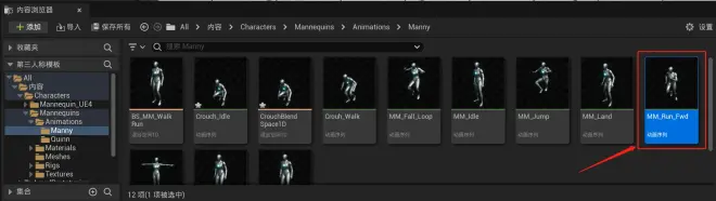 首先找到MM_Run_Fwd动画序列,复制一份出来,改个名字为MM_Sprint_Fwd