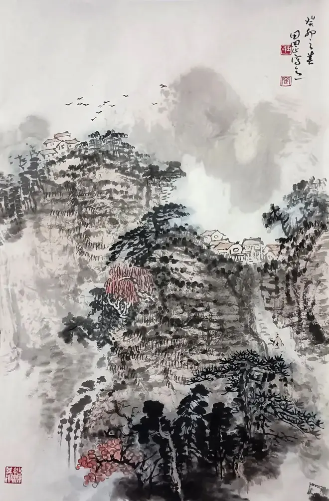 国画作品《山间雨意图》第7届全国美育成果展 全国高校美育成果展教师组二等奖