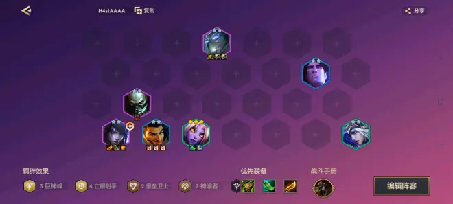 随到巨神峰地区时用的 亡眼巨神 阵容 肾主坦 饿废牛子主吸⌓‿⌓ 手册:卡牌大师 符文:潘多拉装备 巨神峰/亡眼射手之心/纹章 各类无法合成的纹章(靠潘多拉去随机) 奥恩装备:黑切>射手专注>其他 光明装备:光明羊刀>光明正手>各类光明防装>其他