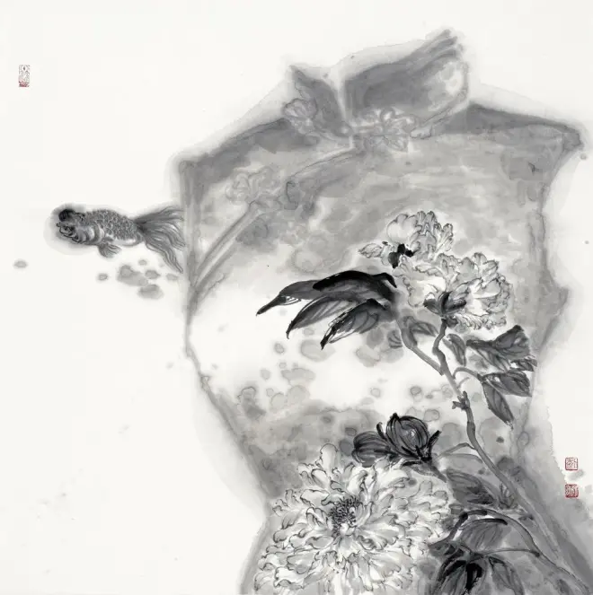 近来得见妍宏数十幅写意花鸟创作,展卷伊始,一股清新之气便扑面而来。在她几个系列的作品中,皆可洞悉她对自然真诚的挚爱和对艺术潜心的探究。她的作品,有的墨色交融、生机盎然,可见其传承之功;有的纯施水墨、素雅高洁,可感其心境无尘之真趣;更有以人体与花卉结合者,想象瑰丽、构思奇妙、语言新颖,极富女性之妩媚与柔情,观之令人耳目一新,可视为她迁想妙得、锐意创新的代表作。