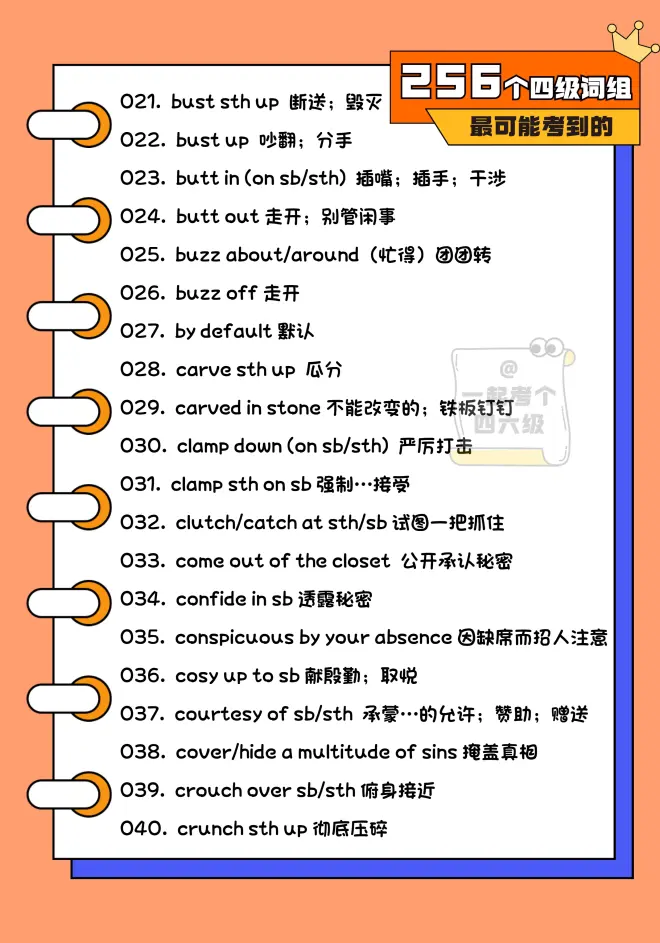 涨词儿 | 六级最可能考到的256个词组
