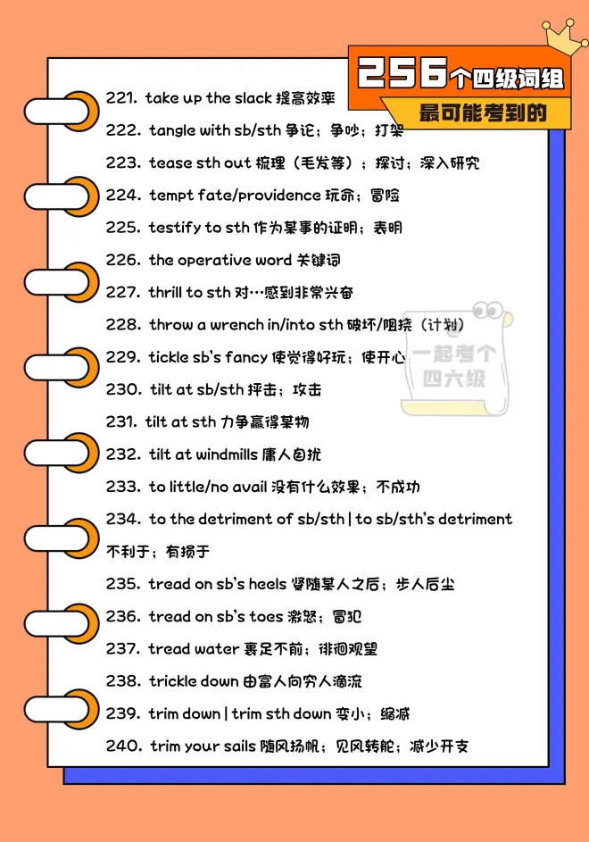 涨词儿 | 六级最可能考到的256个词组的评论 (共