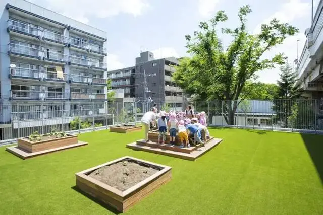 许多老旧园所室外活动场地大多存在建筑面积不足和功能不全等问题,在改造时应考虑场地使用的多功能性来弥补用地面积不足等问题。或通过优化屋顶、中庭等活动平台利用率,弥补班级活动场地,丰富幼儿游戏的各种类型。