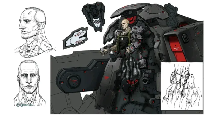 循着机械右眼眼膜上显示的路线,浑身是血的少年跨过一个个鲜血淋漓的尸骸,在堆积着构造体残骸和尸体的走廊内快速行走。残缺不全的尸块暴露了内部骇人的血淋淋的人体组织;滋滋冒着火花的构造体残骸,有一些还在微弱地发出声音,由于发声系统和中枢核心被破坏让他们的声音听起来充满了电子的杂音。