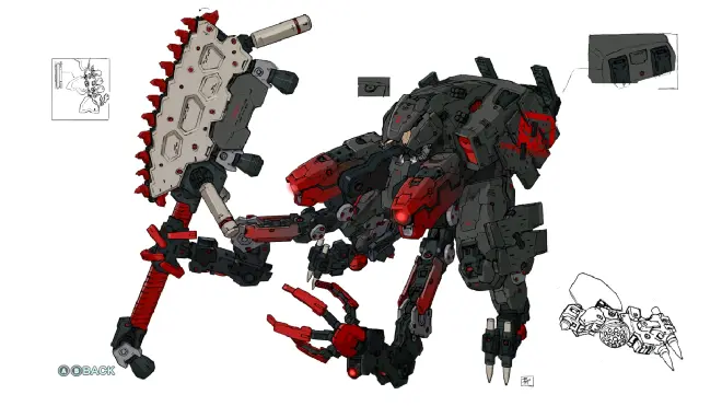 背包内隐藏的刀片弹出,再一次地在背后形成了双翼。他左手紧握“阿尔忒弥斯”,右手持着高频太刀,喷气背包喷口强大的推动力推动着早已没有了恐惧的他无视烟尘的阻挠,一跃而下……