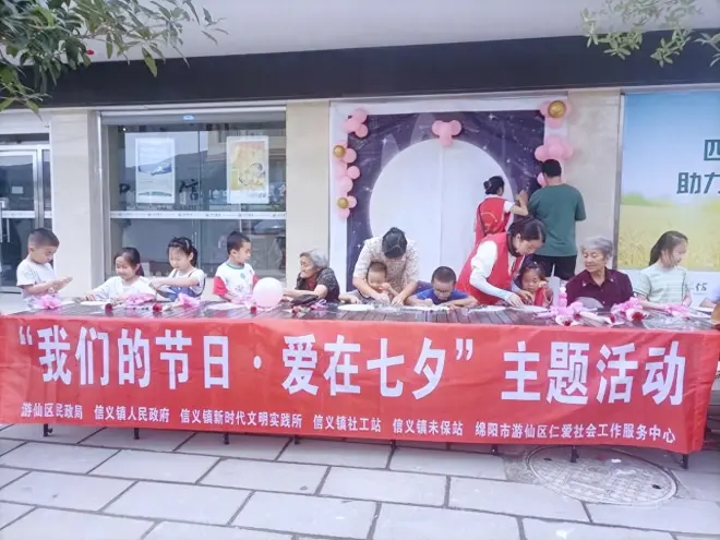 为弘扬中华传统文化,充分挖掘“七夕”文化内涵,树立辖区内广大群众正确的爱情观、婚姻观、家庭观,促进家庭和睦、社会和谐,2023年8月21日,信义镇社工站社工携手爱心志愿者在信义辖区内开展了一场“我们的节日·爱在七夕”主题活动,辖区内近50名群众参与了此次活动。
