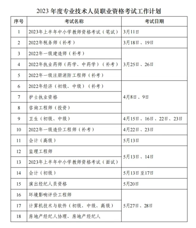 » 2023年度专业技术资格考试时间表(68项),赶紧收藏吧