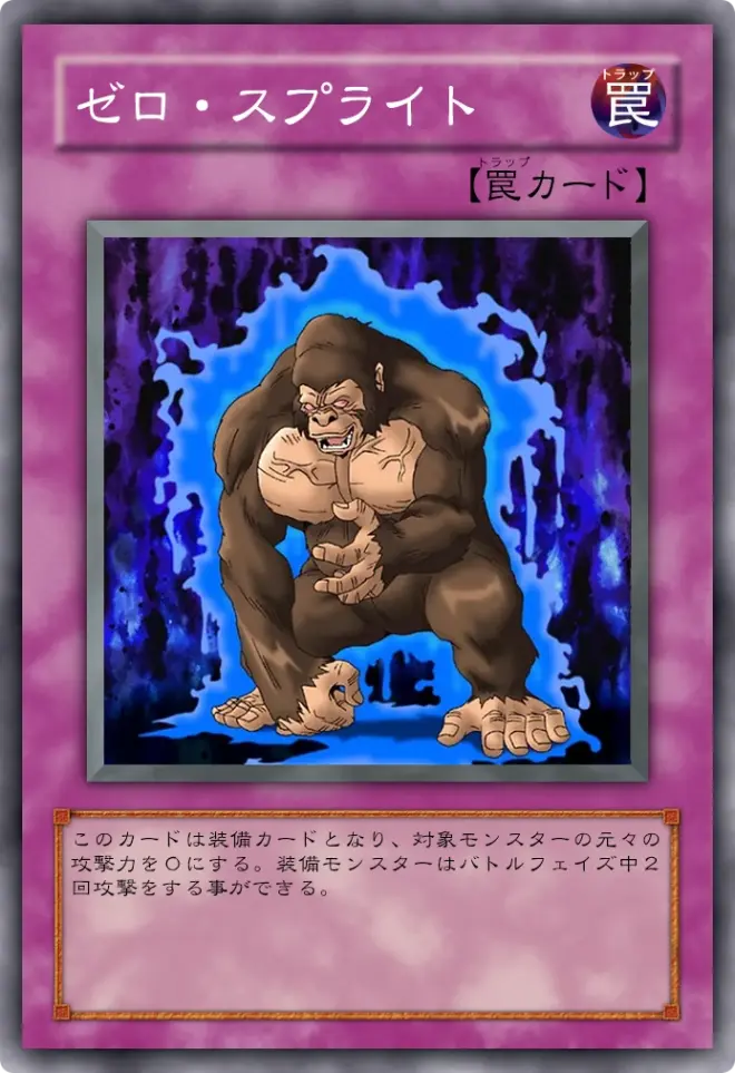 このカードは装備カードとなり、対象モンスターの元々の攻撃力を0にする。装備モンスターはバトルフェイズ中2回攻撃をする事ができる。